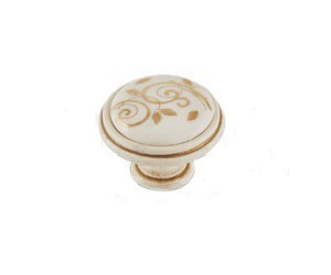 Ручка кнопка WPO.77.01.M1.000.V5, материал Замак Керамика, отделка Слоновая кость Золото Керамика Золотая патина, 27*d=35 мм